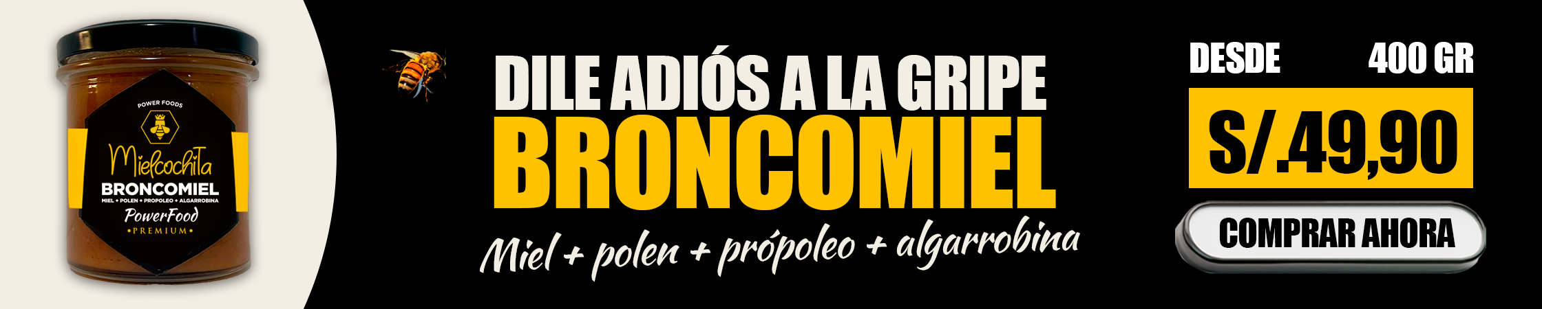 Broncomiel - 400 GR | Miel cruda + Polen + Propóleo + Algarrobina